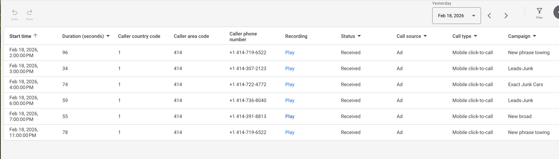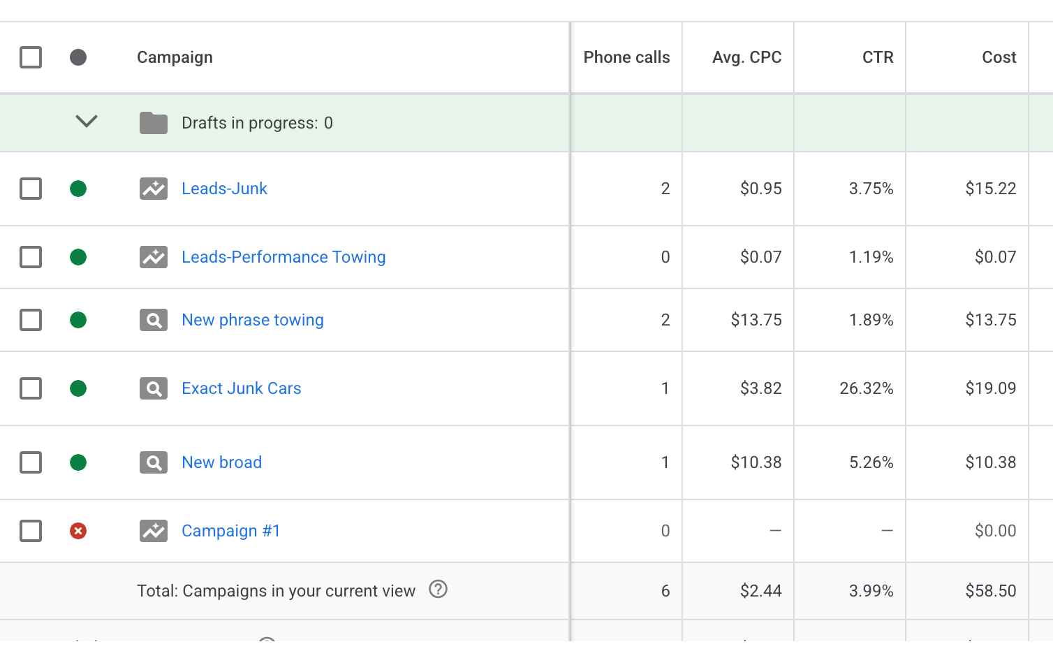 Day 1 Client Results: Spent $58 Closed 2 Tows 4 Junk Cars